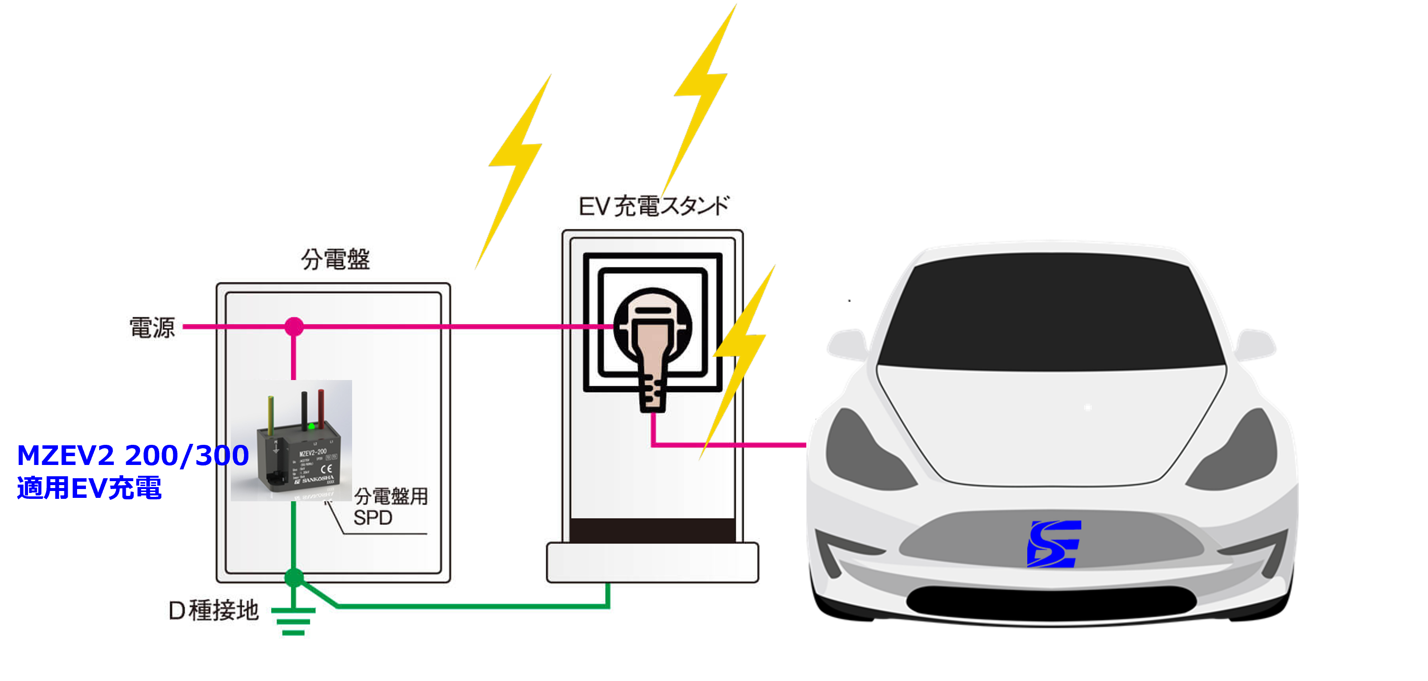 為因應 EV 充電設備的防雷需求,SANKOSHA 推出 MZEV-200 系列突破保護器(SPD)。該系列為低壓電源用 JIS Class II/III SPD, 適用於 AC100V 或 AC200V 單相兩線系統,可廣泛應用於: