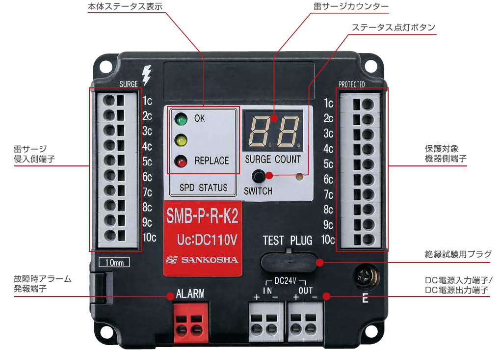 HOWL2SMB-P・R-NM 為火警自動警報設備設計的突波保護器,適用 P 型與 R 型系統,具多回路保護、雷擊次數計與警報接點,符合 JIS C 5381-21,可強化消防警報系統的雷擊防護能力。